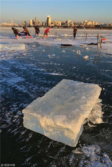 寒冬采冰人:起早貪黑 “淘金”冰雪