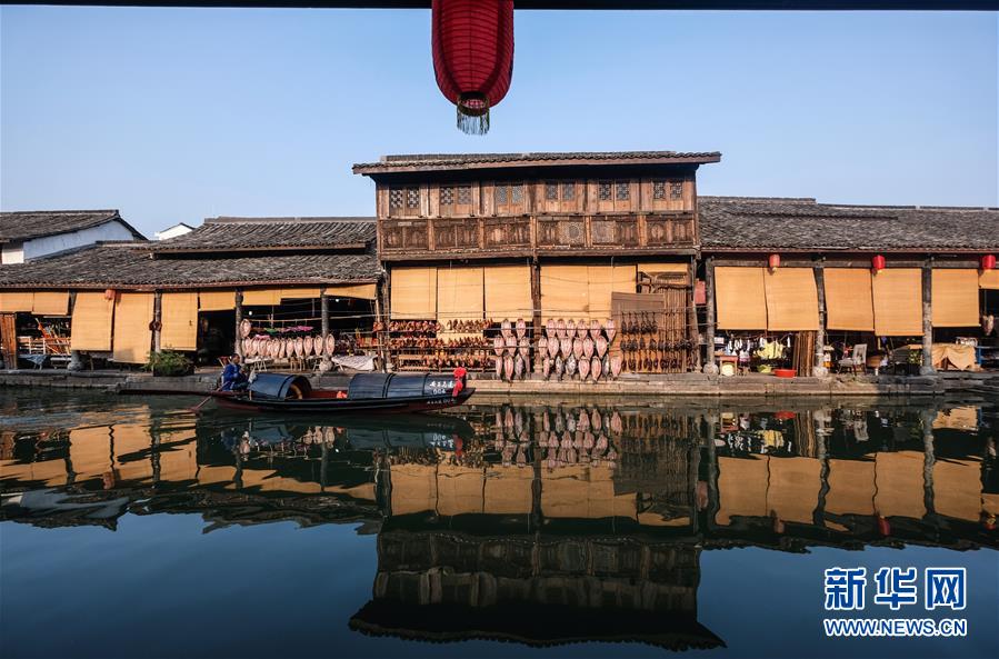 12月3日,安昌古鎮(zhèn)的河邊曬滿了各種手工制作的紹興臘味。新華社記者徐昱攝