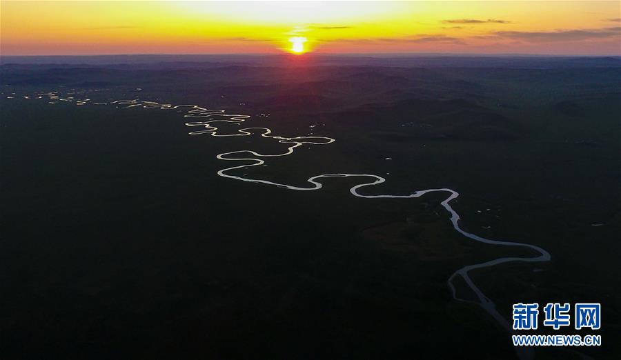 8月26日無人機(jī)拍攝的伊敏河(全景照片)。伊敏河流經(jīng)呼倫貝爾草原。新華社記者沈伯韓攝