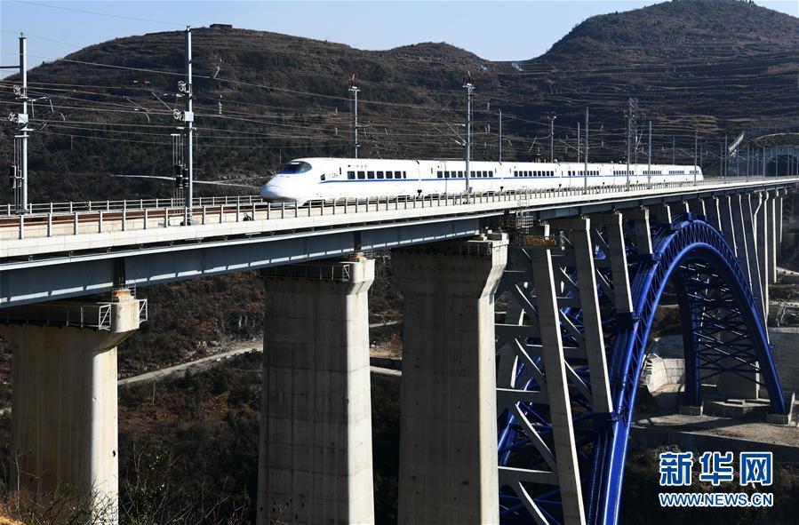 12月16日,一列動(dòng)車組列車從成貴高鐵西溪河大橋上駛過(guò)。新華社記者楊文斌攝