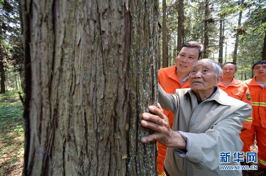 4月27日,在貴州省畢節(jié)市赫章縣平山國有林場,李代關老人(前)在查看當年和同事種的杉樹。今年88歲的李代關是貴州省畢節(jié)市赫章縣平山國有林場的一名退休職工,他1958年參加工作,成為一名林業(yè)工人,把畢生奉獻給了林業(yè)事業(yè)。在李代關的感召下,他的兒子和孫子都成為了護林員。經(jīng)過幾代林業(yè)工人的努力,截至2018年底,赫章縣平山鎮(zhèn)的森林覆蓋率已達66.7%。新華社記者楊楹攝