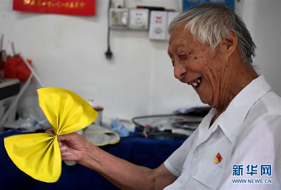 7月31日,葉連平在“留守未成年人之家”教室里欣賞學生剛剛送給自己的折紙禮物。92歲的退休教師葉連平生活在安徽省和縣烏江鎮(zhèn)卜陳村,村里的年輕人大多外出工作,留下的多是老人和孩子,家長普遍沒有能力輔導孩子學習。2000年,原本是老師的葉連平?jīng)Q定創(chuàng)辦“留守未成年人之家”,為孩子們免費補習英語。19年來,葉連平幫助過的孩子超過1000名。新華社記者劉軍喜攝