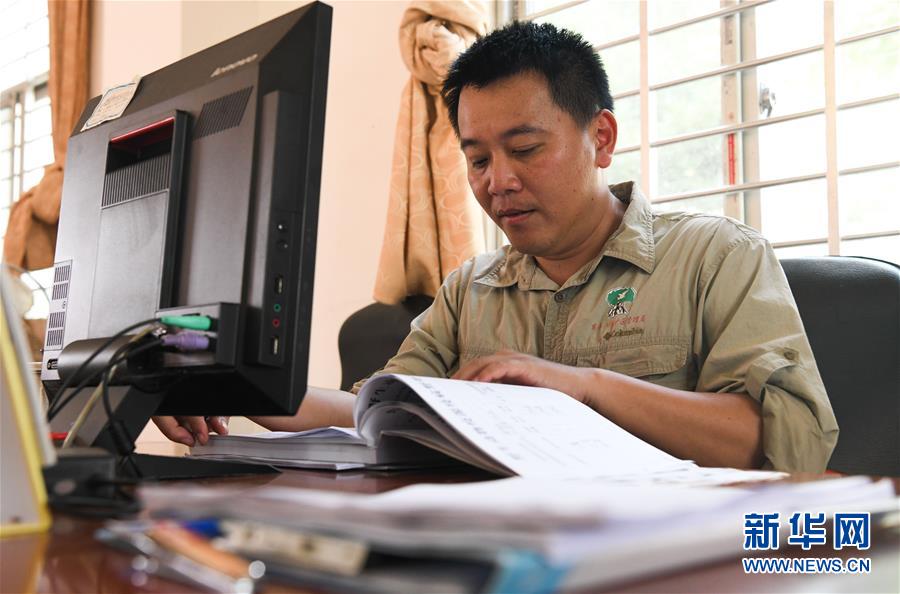 海南東寨港國家級自然保護區(qū)林業(yè)工程師馮爾輝在保護區(qū)內(nèi)的辦公室查看相關(guān)資料(12月18日攝)。 馮爾輝2009年大學(xué)畢業(yè)后來到保護區(qū)工作,小時候他家就住在紅樹林邊上,他從小和紅樹林打交道,喜歡動植物和鳥類。外貿(mào)專業(yè)畢業(yè)的他邊工作邊學(xué)習(xí),目前主要從事鳥類監(jiān)測、紅樹林保育、自然教育等工作?!凹t樹林看著我長大”,馮爾輝說,濕地保護的工作非常有意義。 新華社記者楊冠宇攝
