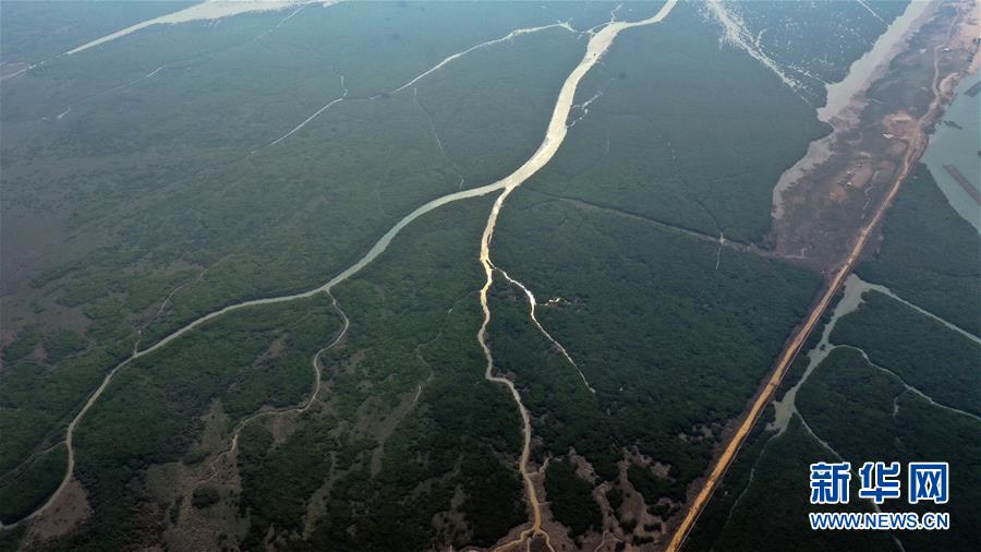 12月21日無人機拍攝的廣西合浦縣黨江鎮(zhèn)更螺圍出??谝痪啊6眨瑥V西廉州灣海域風(fēng)光別致。新華社記者張愛林?jǐn)z