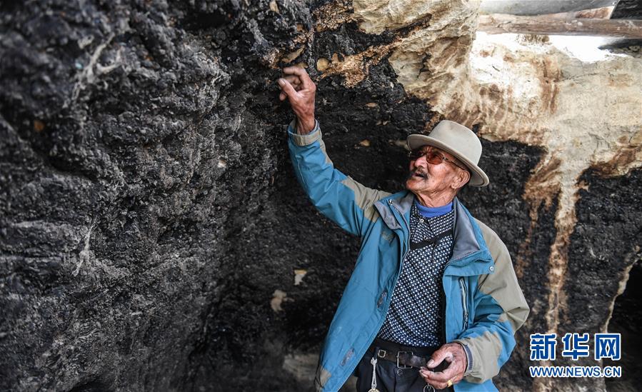達瓦次仁和他曾經居住的、位于古格遺址前的家(7月30日攝)。新華社記者晉美多吉攝