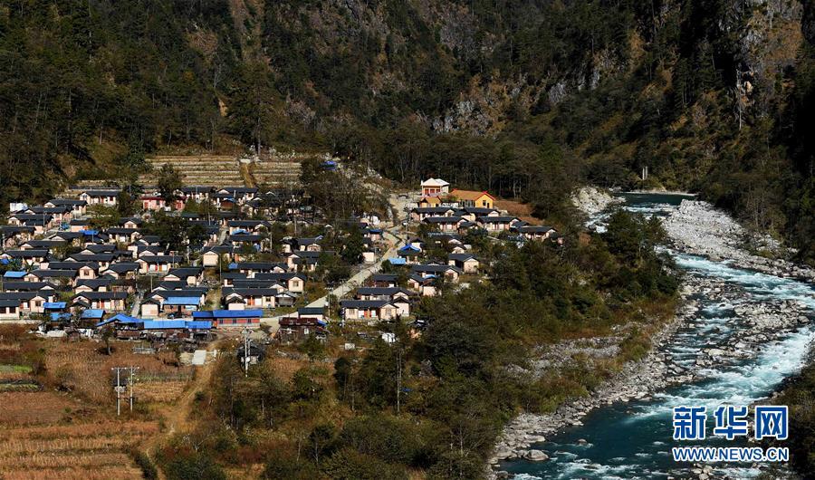 位于獨龍江畔的獨龍江鄉(xiāng)迪政當(dāng)村的集中安居房一景(2016年11月23日攝)。新華社記者藺以光攝