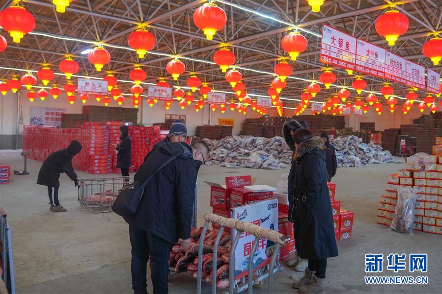 12月27日,在查干湖漁場超市,消費者選購查干湖魚。新華社記者張楠攝