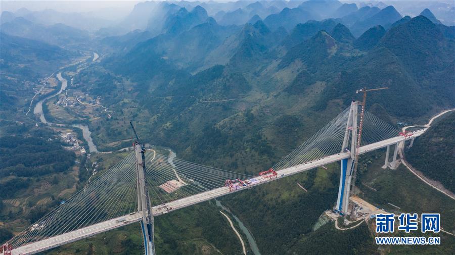當日,332米高的全球最高混凝土橋塔——貴州平塘至羅甸高速公路控制性工程平塘特大橋成功合龍。記者從貴州省交通運輸廳了解到,平塘特大橋全長2135米,橋面寬30.2米,規(guī)劃雙向4車道,是一座三塔雙索面疊合梁斜拉橋。三座橋塔的高度分別為320米、332米和298米,相當于在峽谷之中建了三座100多層高的大樓。平塘特大橋于2016年4月開工建設(shè),2018年11月橋塔順利封頂,計劃總工期為42個月,總投資15億元。此次合龍后,還要進行橋面施工和欄桿等工程建設(shè),預(yù)計今年底全橋通車,屆時平塘到羅甸的通行時間將從2個半小時縮短至1小時,將成為連接貴州南部的交通要道,對助推滇黔桂石漠化片區(qū)脫貧攻堅具有重要意義。