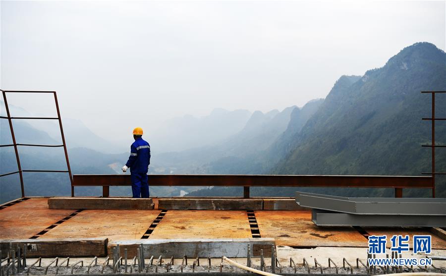 9月26日,一名建設(shè)者在平塘特大橋上眺望。
