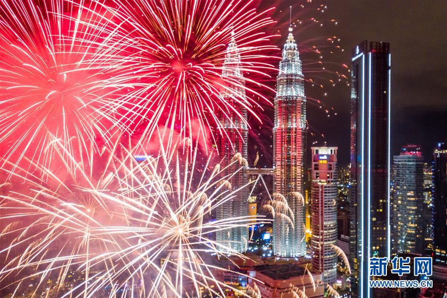 2020年1月1日,焰火在馬來(lái)西亞吉隆坡的馬來(lái)西亞國(guó)家石油公司雙塔旁綻放,迎接新年的到來(lái)。新華社記者朱煒攝