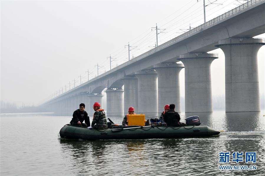 當(dāng)日,中國(guó)鐵路濟(jì)南局鐵道戰(zhàn)備舟橋處和中國(guó)鐵路濟(jì)南局臨沂工務(wù)段聯(lián)合對(duì)日蘭高鐵沂河特大橋進(jìn)行體檢,備戰(zhàn)即將到來的2020年春運(yùn)。位于山東臨沂市境內(nèi)的沂河特大橋長(zhǎng)達(dá)23公里,技術(shù)人員采用水下探摸錄像、超聲檢測(cè)和箱梁檢測(cè)等方式排查隱患,建立健全橋梁技術(shù)一手資料,確保春運(yùn)安全。