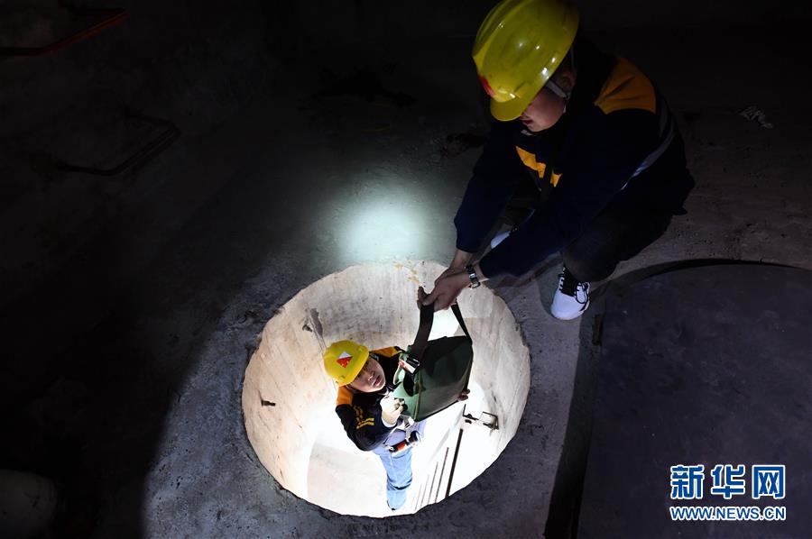 1月3日,中國(guó)鐵路濟(jì)南局臨沂工務(wù)段工程技術(shù)員通過狹小的檢查孔進(jìn)入箱梁檢查。新華社記者 朱崢攝