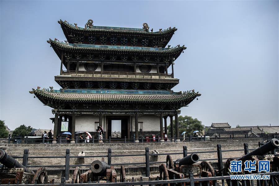 這是7月20日無人機(jī)拍攝的平遙古城北門。