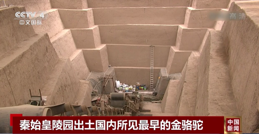 近日,秦始皇帝陵博物院公布最新考古成果:考古人員在秦陵在秦陵外城西側(cè)的陵區(qū),對一座編號為一號墓葬(QLCM1)的“中字形”墓葬進(jìn)行了發(fā)掘,取得重要收獲。該墓為目前發(fā)現(xiàn)秦代規(guī)模最大、等級最高、保存最完好的大型墓葬,填補(bǔ)了秦代高等級墓葬的空白。出土了目前國內(nèi)所見最早的單體金駱駝。