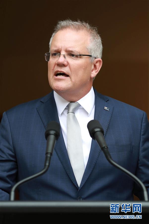 1月6日,在澳大利亞首都堪培拉,澳大利亞總理莫里森(左)在國會(huì)大廈出席新聞發(fā)布會(huì)。新華社記者白旭攝