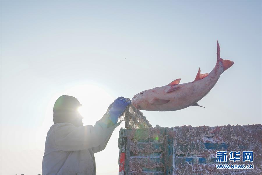 2019年12月27日,在查干湖冰面上,工人將剛打撈上來的大魚扔上貨車。 12月28日,查干湖第十八屆冰雪漁獵文化旅游節(jié)在吉林省松原市查干湖冰封的湖面上啟幕。查干湖位于中國(guó)吉林省松原市前郭爾羅斯蒙古族自治縣,漁產(chǎn)資源豐富,被譽(yù)為“中國(guó)北方最后的漁獵部落”。 新華社記者 張楠 攝