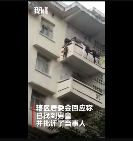 小男孩被大人們用繩子系著腰,晃晃悠悠地吊下三樓遮雨平臺后,勇敢地走向貓,將其抱起,接著又被5樓的奶奶等人晃晃悠悠地吊起往上拉,小男孩全程表情木然,絲毫未見緊張害怕。萬幸的是,最終男孩平安并順利完成任務(wù)。