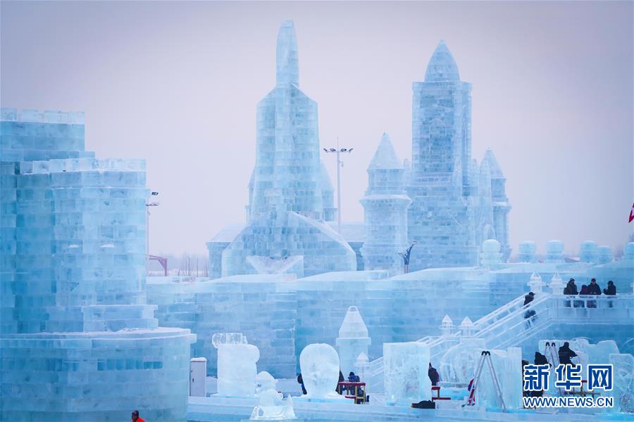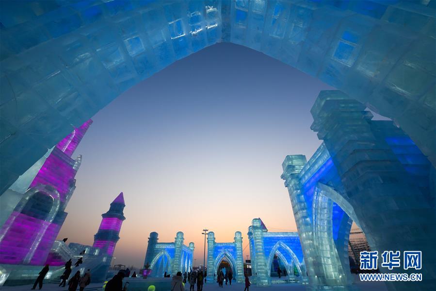 這是哈爾濱冰雪大世界園區(qū)中的景觀(1月5日攝)。每到冬季,天氣寒冷的冰城哈爾濱陸續(xù)迎來(lái)各類冰雕雪雕賽事。從2019年12月7日起,采冰工人們?nèi)找共杀\(yùn)冰、冰景雪雕藝術(shù)家精心雕琢,這些“冰雪造夢(mèng)者”們?cè)趪?yán)寒天氣中辛苦付出,讓一座“冰雪之城”在松花江畔拔地而起,向來(lái)自世界各地的游客展現(xiàn)浪漫絢麗的冰雪奇觀。新華社記者王松攝