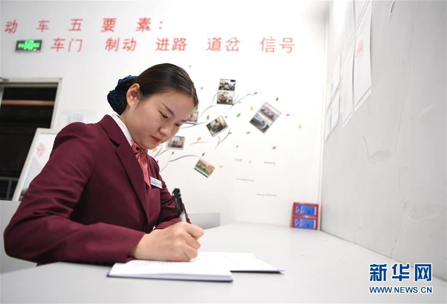 劉慧君在工作區(qū)填寫司機(jī)日志(1月16日攝)。新華社記者周華攝