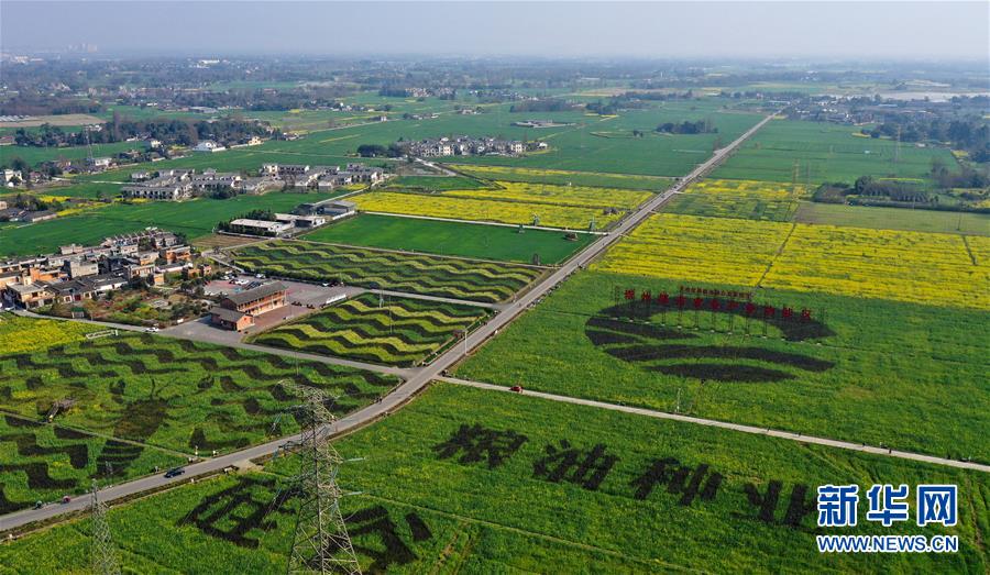 2月25日在四川省崇州市農(nóng)業(yè)產(chǎn)業(yè)功能區(qū)拍攝的油菜花田(無人機照片)。 初春時節(jié),正值農(nóng)時。成都平原西部的大邑、崇州等縣市油菜長勢良好,一片生機盎然的景象。 新華社記者 王曦 攝