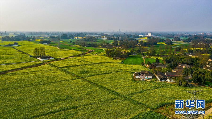 2月25日在四川省崇州市拍攝的油菜花田(無人機(jī)照片)。 新華社記者 王曦 攝