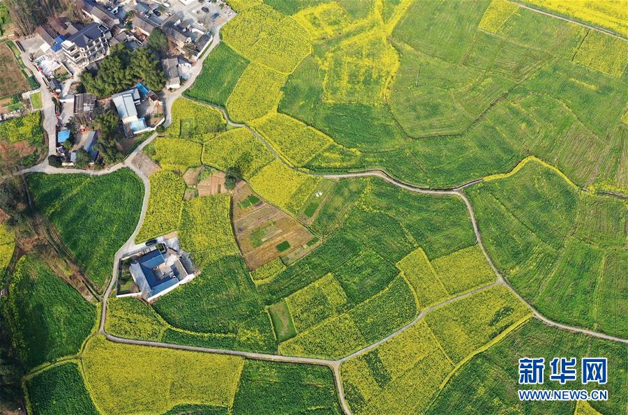 2月25日在四川省崇州市拍攝的油菜花田(無人機(jī)照片)。 新華社記者 王曦 攝