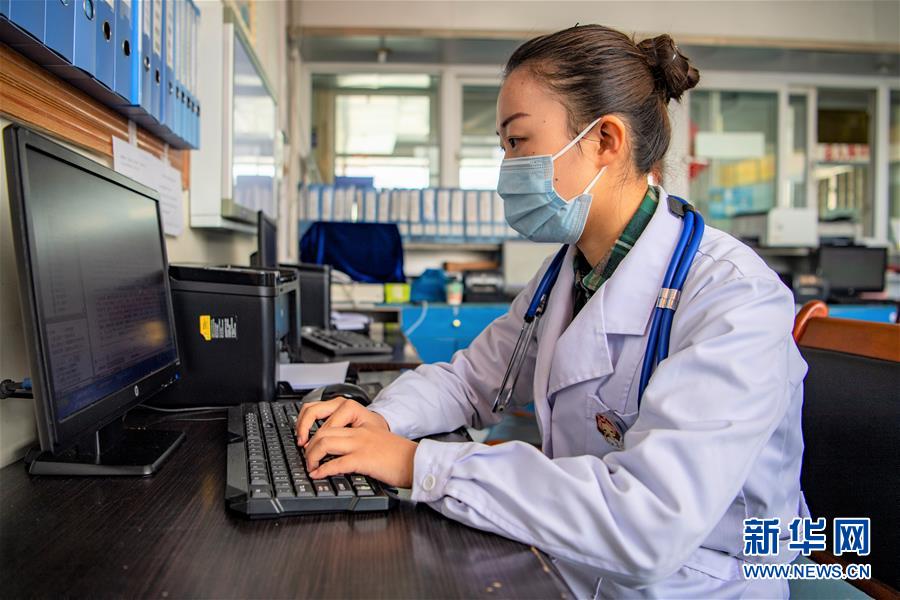 在西藏自治區(qū)人民醫(yī)院實習的西藏大學醫(yī)學院2017級內(nèi)科學專業(yè)研究生張澤鑫在工作中(2月23日攝)。新華社記者孫非攝