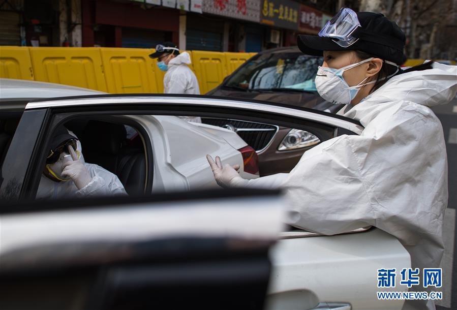 2月29日,W大武漢緊急救援隊隊長王紫懿(右)與李文建在商量出車事宜。新華社記者 肖藝九 攝