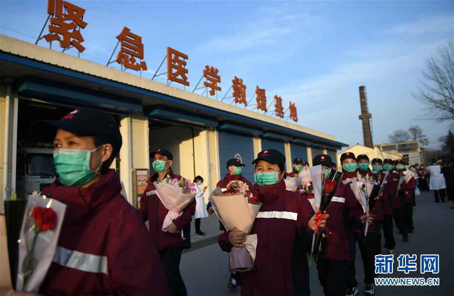 3月17日,醫(yī)療隊隊員抵達位于西安的陜西省國家緊急醫(yī)學(xué)救援基地。新華社記者李一博攝