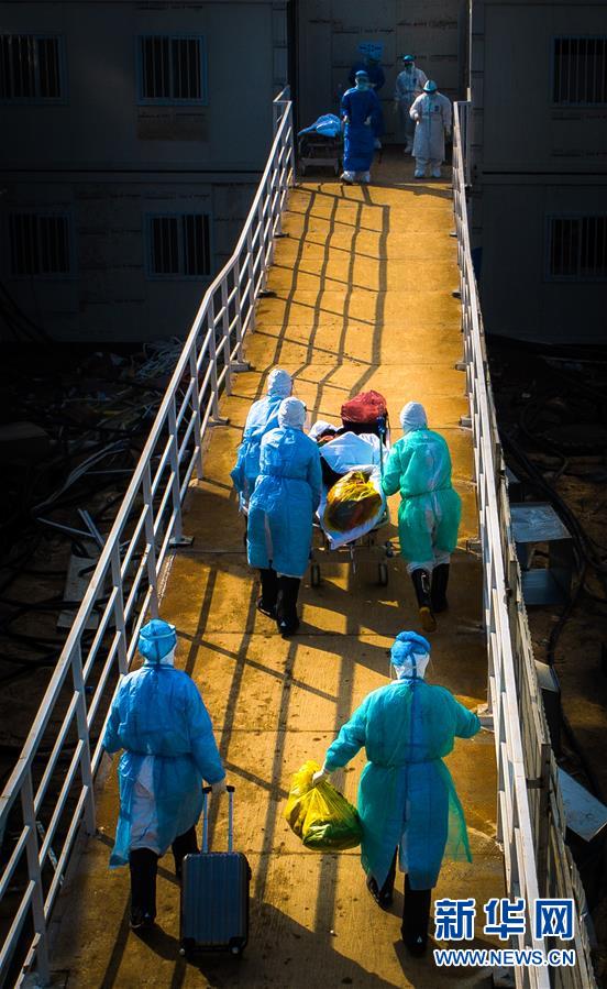 醫(yī)護(hù)人員將患者轉(zhuǎn)運(yùn)至武漢火神山醫(yī)院病房(2月4日攝)。新華社記者肖藝九攝