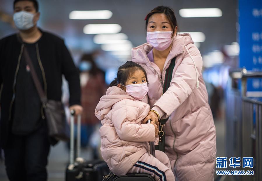 3月28日,在漢口火車站,一名小朋友幫家長提行李出站。新華社記者肖藝九攝