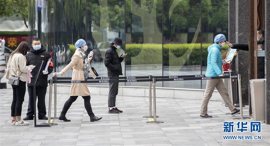 3月30日,顧客排隊(duì)進(jìn)入武商國(guó)際廣場(chǎng)。當(dāng)日,武漢市多家商場(chǎng)開(kāi)門(mén)迎客。新華社記者費(fèi)茂華攝