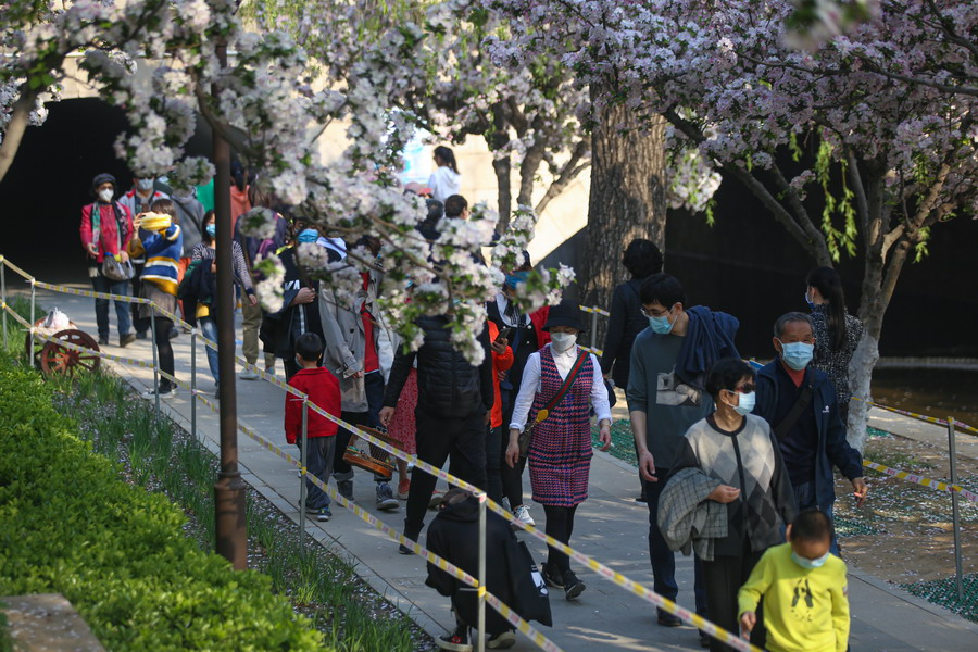 4月6日是清明小長假的最后一天,在元大都遺址公園內(nèi)海棠花已全部盛開,形成片片海棠花溪,景色絕美。市民游客置身其中,感受春意盎然的氛圍。市民游客紛紛拍照留念,甚至不乏有身著漢服的小姐姐,在園內(nèi)人流稀少處,迅速摘戴口罩拍下了美照,“C位出道“。