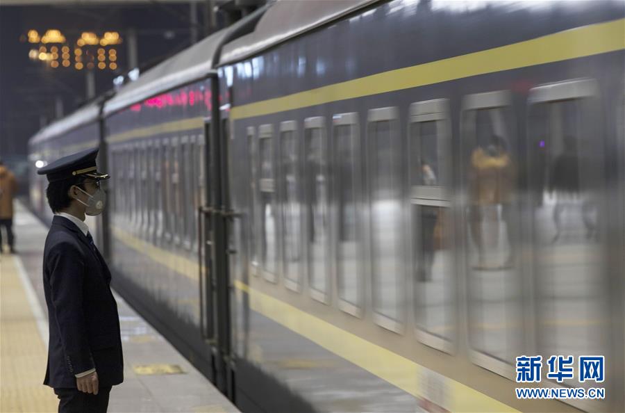 4月8日凌晨,K81次列車駛離武昌火車站。 4月8日零時起,武漢市正式解除離漢離鄂通道管控措施,有序恢復(fù)對外交通。 新華社記者 費(fèi)茂華 攝