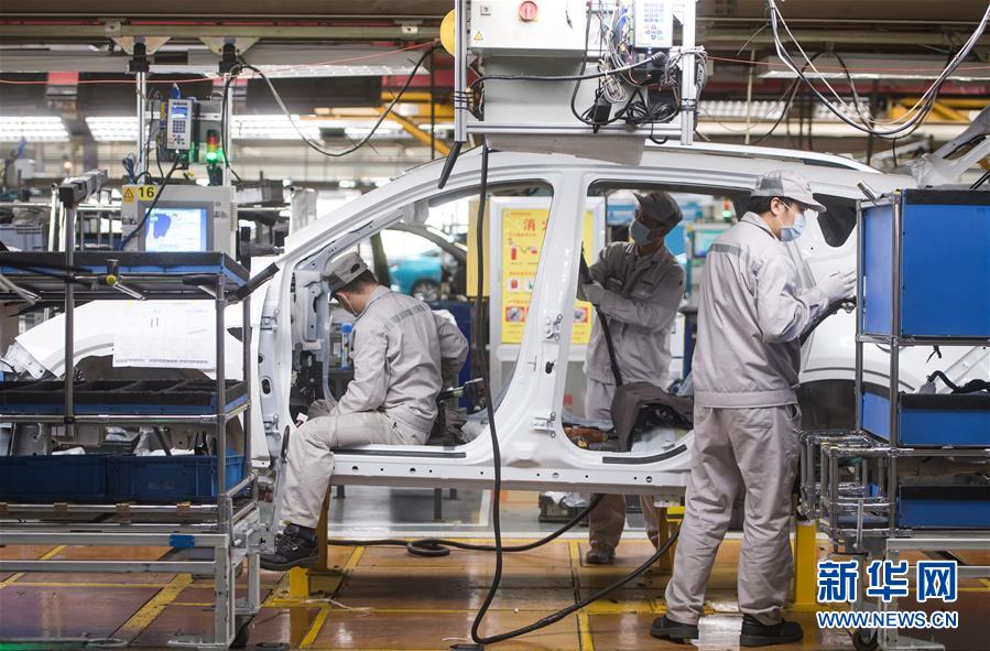 3月24日,工人在東風(fēng)乘用車(chē)公司工廠總裝車(chē)間流水線上作業(yè)。 新華社記者 肖藝九 攝