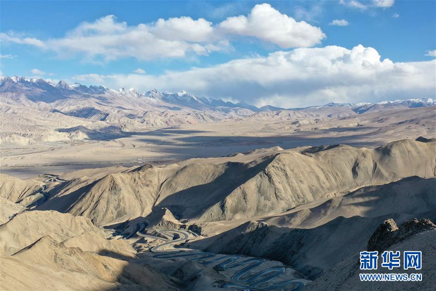 這是10月20日無人機(jī)拍攝的新疆塔什庫(kù)爾干塔吉克自治縣吾格亞提盤山公路。新華社記者丁磊攝