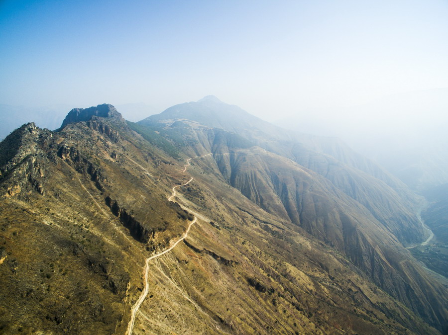 2020年4月5日,云南,昆明市祿勸縣雪山鄉(xiāng)基多村委會到基多村民小組的公。公路在原地盤旋海拔下降1200米。