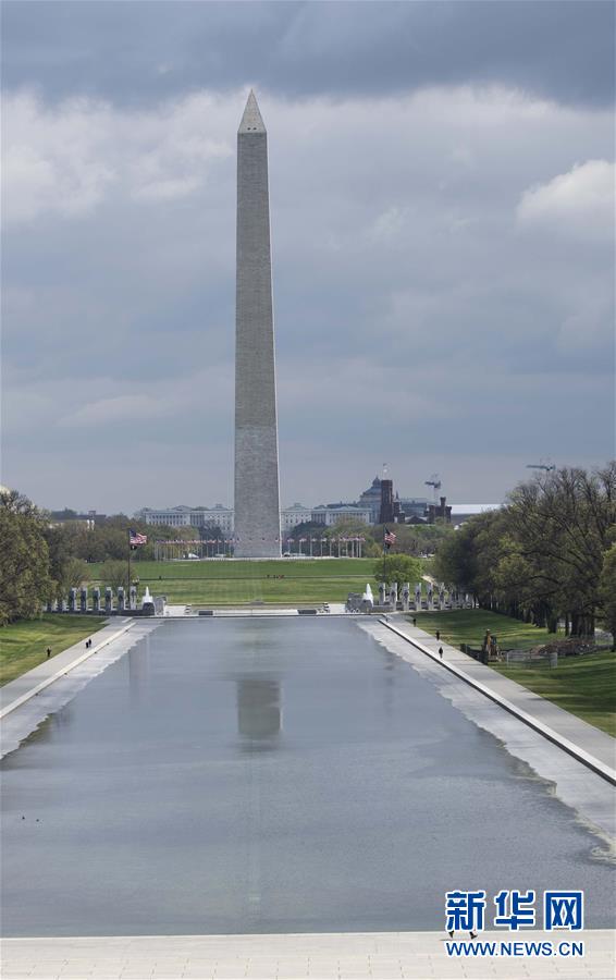 4月1日,在美國(guó)首都華盛頓,一名男子在華盛頓紀(jì)念碑附近跑步。新華社記者劉杰攝
