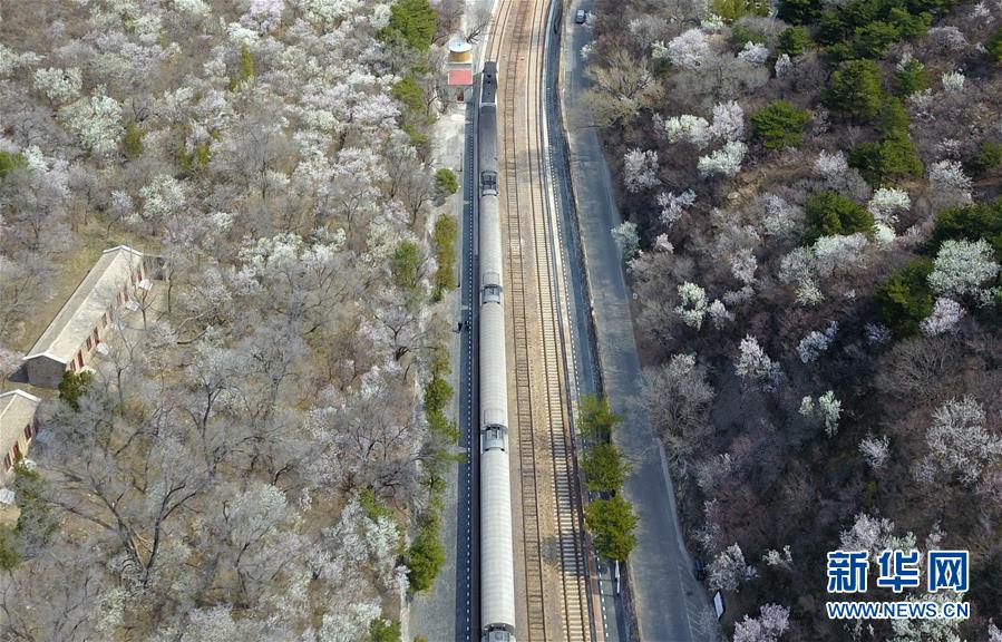 4月8日,北京青龍橋火車站附近春花盛開(無(wú)人機(jī)照片)。 新華社記者張晨霖?cái)z