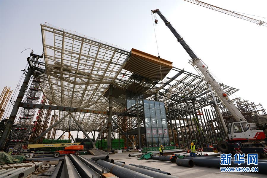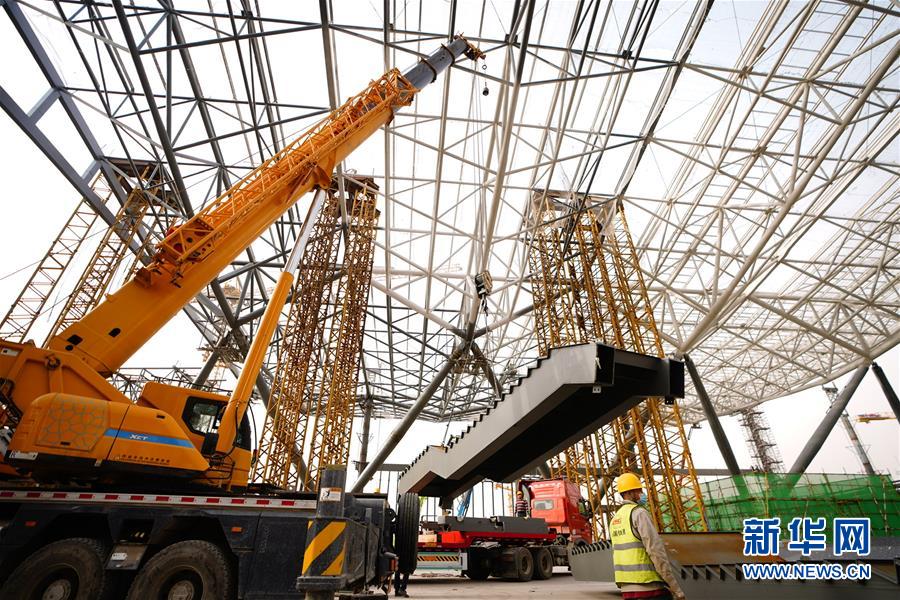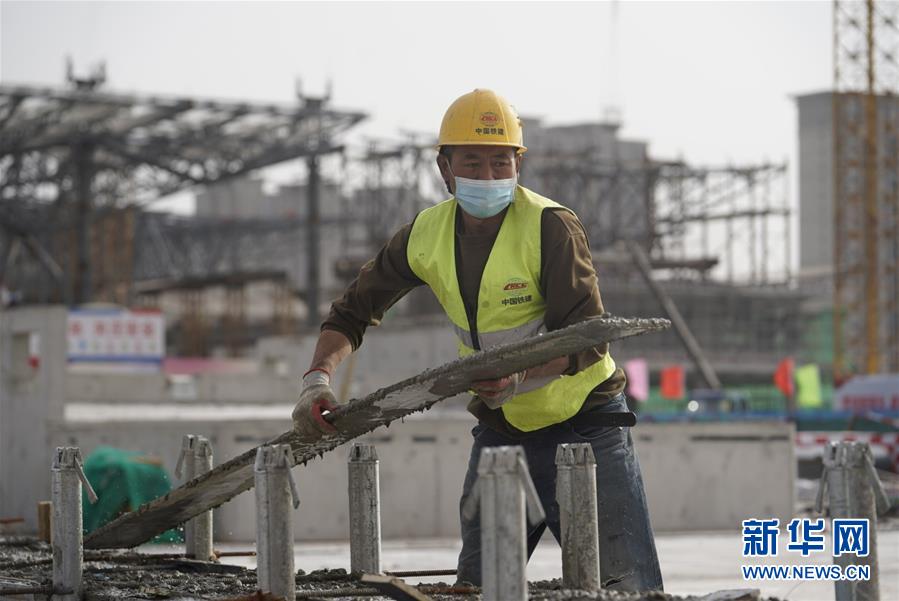 4月24日,中鐵建設(shè)集團(tuán)的工人在星火站施工。北京星火站是京沈高鐵的始發(fā)站,站房總建筑面積18.3萬(wàn)平方米,將于2020年底完工。目前正在進(jìn)行混凝土主體結(jié)構(gòu)收尾工作,鋼結(jié)構(gòu)主體正在緊張施工,即將完工。新華社記者邢廣利攝