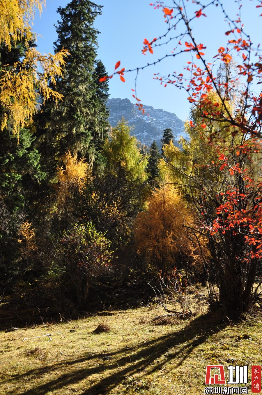 溝里有大片的落葉松、杜鵑和云杉林,雪山、海子、濕地、河流等景觀應(yīng)有盡有,唯獨(dú)沒有公路,只能沿木棧道徒步游覽。李仁奇攝