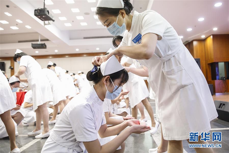 4月26日,北京大學(xué)人民醫(yī)院新入職護(hù)士參加授帽儀式。當(dāng)日,北京大學(xué)人民醫(yī)院為97名2019屆新入職護(hù)士舉行隆重莊嚴(yán)的授帽儀式和重溫南丁格爾誓言的活動(dòng),以此紀(jì)念南丁格爾誕辰200周年和即將到來的“國際護(hù)士節(jié)”?;顒?dòng)還邀請了5名援鄂國家醫(yī)療隊(duì)護(hù)士代表分享戰(zhàn)“疫”故事。新華社記者張玉薇攝