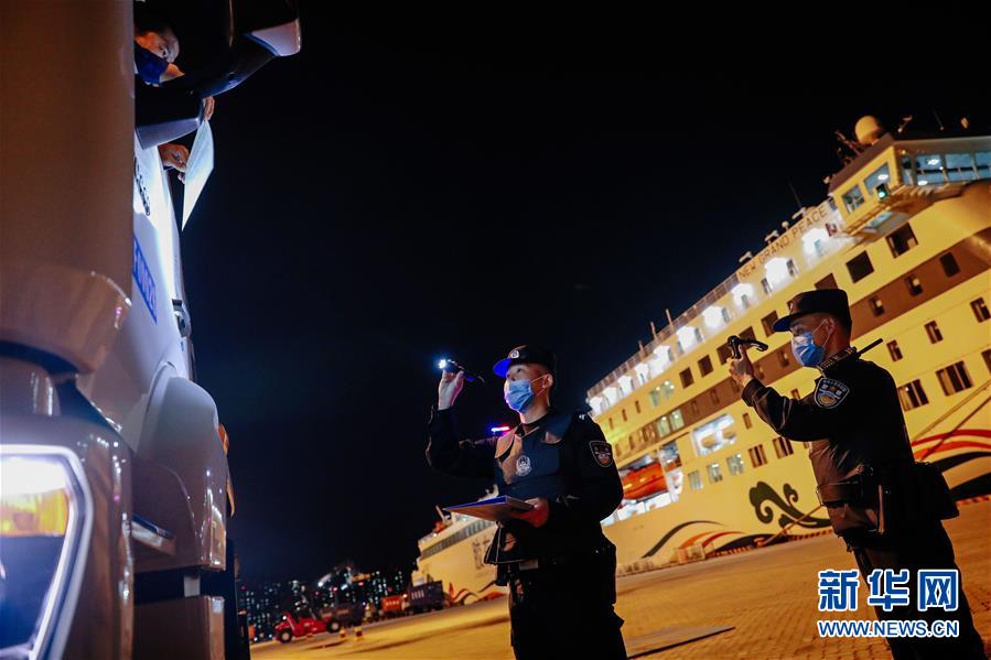 5月13日,山東威海出入境邊防檢查站民警在核對外籍船員證件。面對疫情防控要求,山東威海出入境邊防檢查站嚴(yán)密勤務(wù)組織、強化數(shù)據(jù)研判,加強口岸、碼頭的日常巡查,對國際船舶和船員強化監(jiān)管,全力打好疫情防輸入攻堅戰(zhàn)。據(jù)統(tǒng)計,自2月份以來,威海邊檢站共服務(wù)出入境(港)船舶400余艘次,出入境(港)人員7000多人次,為180多個集裝箱防疫物資提供通關(guān)便利。新華社記者朱崢攝