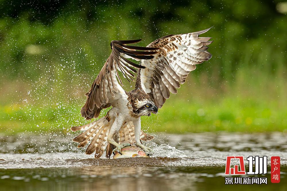 魚鷹俯沖入水捕魚 伺機(jī)而動“快準(zhǔn)狠”