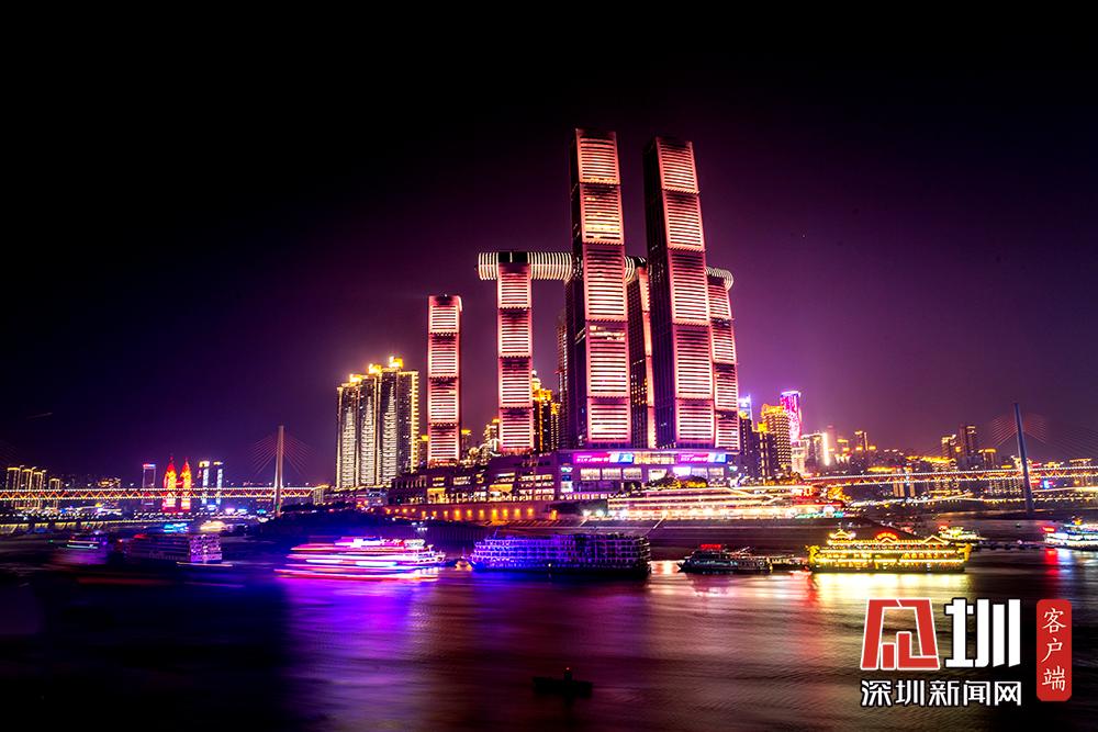 圖為夜色中重慶朝天門來福士廣場(chǎng)。