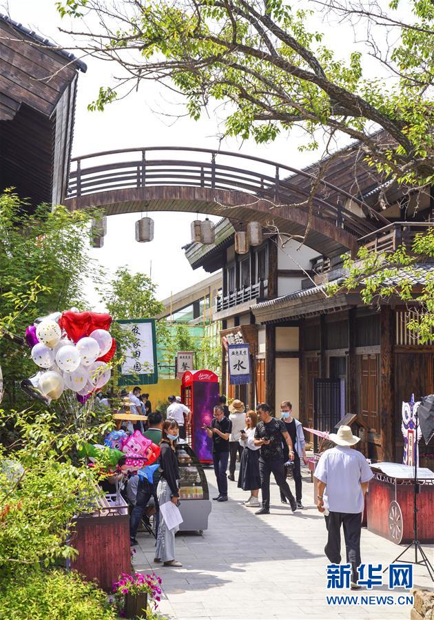 6月13日,市民在長春市世茂蓮花山小鎮(zhèn)寬厚里商街參觀游覽。當日是“文化和自然遺產日”。吉林長春首屆蓮花山消夏生活節(jié)在世茂蓮花山小鎮(zhèn)舉行?;顒訉⒎沁z展示與假日消暑休閑相結合,讓游人在“古色古香”的油紙傘巷中品傳統(tǒng)文化魅力,享夏日休閑愜意。新華社記者許暢攝。