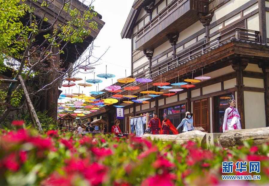 6月13日,在長春市世茂蓮花山小鎮(zhèn)寬厚里商街,表演者身穿漢服、古裝進行表演展示。當日是“文化和自然遺產日”。吉林長春首屆蓮花山消夏生活節(jié)在世茂蓮花山小鎮(zhèn)舉行?;顒訉⒎沁z展示與假日消暑休閑相結合,讓游人在“古色古香”的油紙傘巷中品傳統(tǒng)文化魅力,享夏日休閑愜意。新華社記者許暢攝。