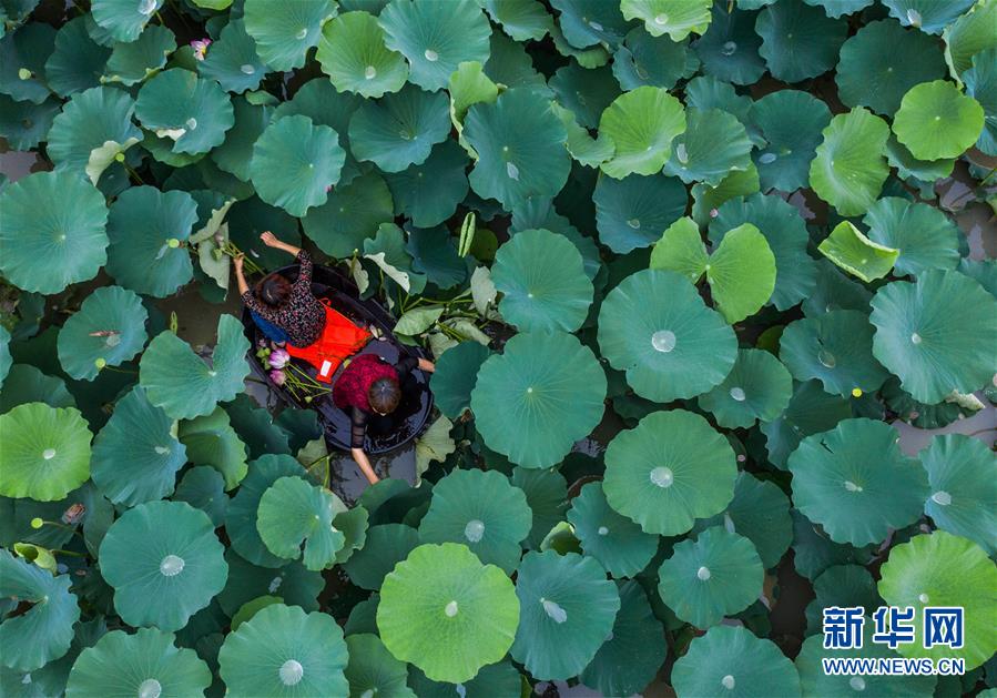 6月23日,東林鎮(zhèn)村民劃著菱桶采收荷花和蓮蓬(無人機(jī)照片)。當(dāng)日,浙江省湖州市東林鎮(zhèn)在泉心村荷花池舉辦“慶端午劃菱桶”趣味活動。村民們劃著菱桶在水面上你追我趕,同時采收荷花和蓮蓬,呈現(xiàn)出水鄉(xiāng)特有的端午節(jié)日氛圍。在河網(wǎng)密布的東林鎮(zhèn),菱桶是水鄉(xiāng)家家戶戶都有的一種傳統(tǒng)水上勞動工具,村民在捕魚、采菱、采荷時都要用到。新華社記者徐昱攝