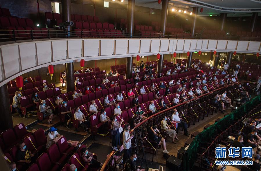 6月26日,市民掃健康碼登記后進入武漢市人民劇院。當日,武漢市中心7家劇場恢復開放,各大文藝院團恢復線下演出,市民再次坐在劇場內(nèi)觀看“戲碼頭”上群星云集、百戲薈萃。新華社記者 肖藝九 攝