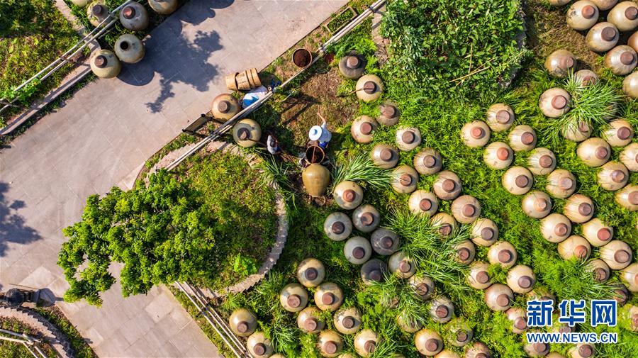 6月26日,工人在曾氏曬醋廠翻取醋醅(無(wú)人機(jī)照片)。新華社記者 陶亮 攝